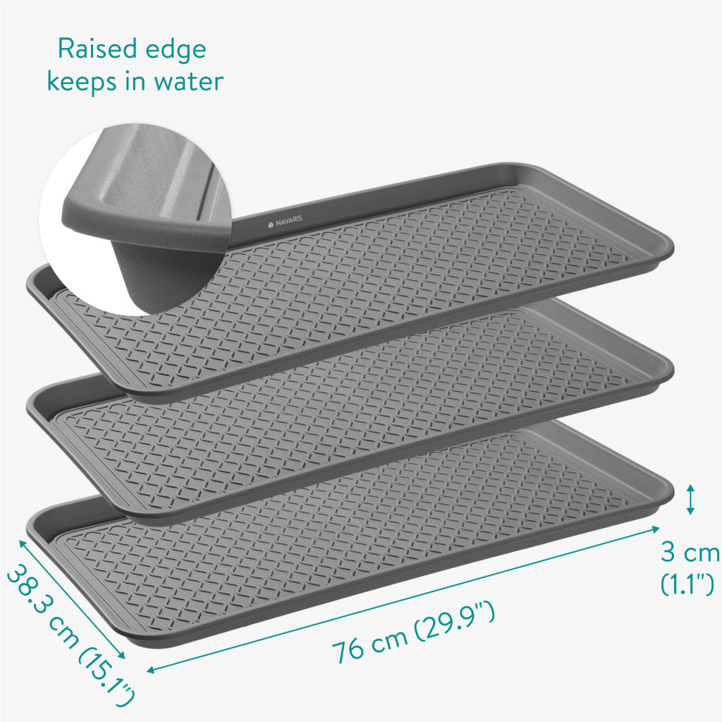 Set 3 tavi incaltaminte Navaris, 76x38 cm, colectare apa si noroi, negru, plastic