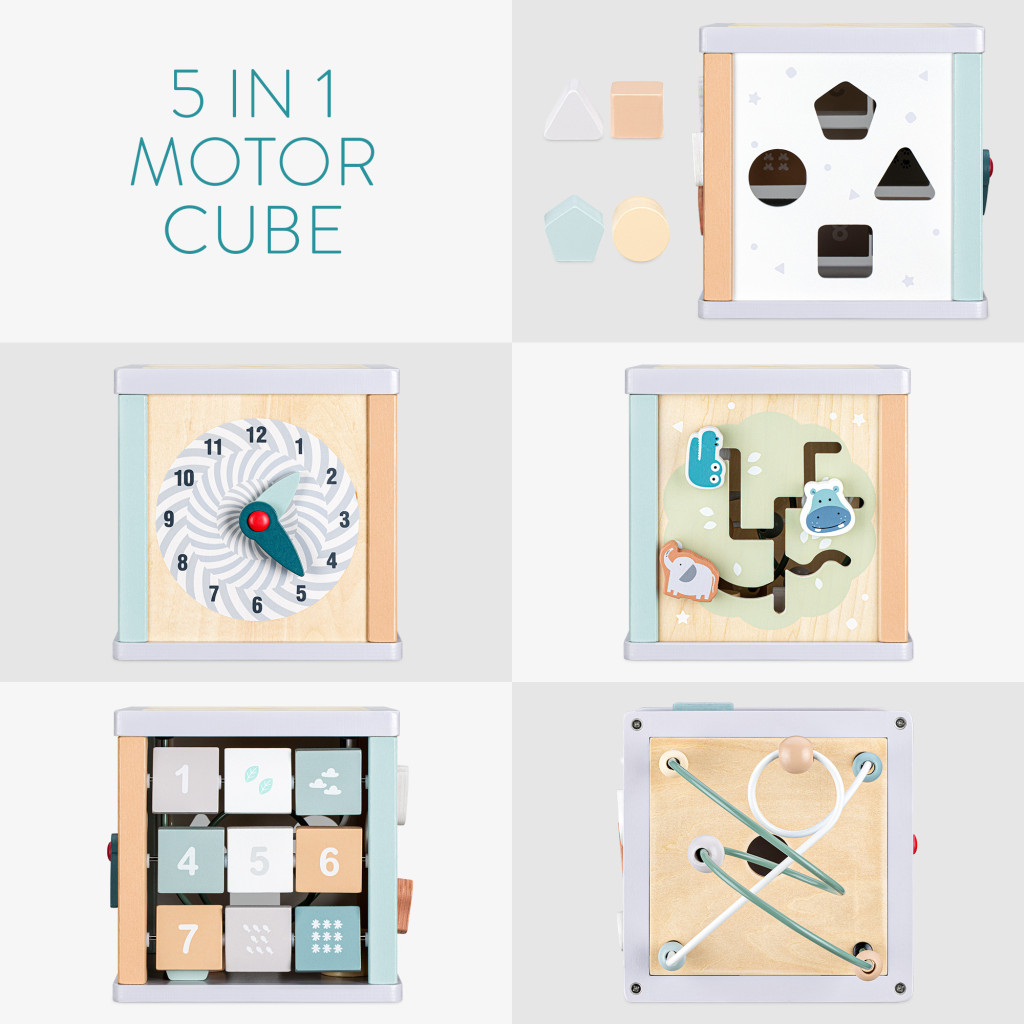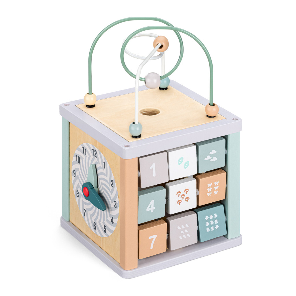 Cub activitati 5 in 1 Navaris din lemn, labirint + sortator + abac, 38x20x20 cm, multicolor, lemn