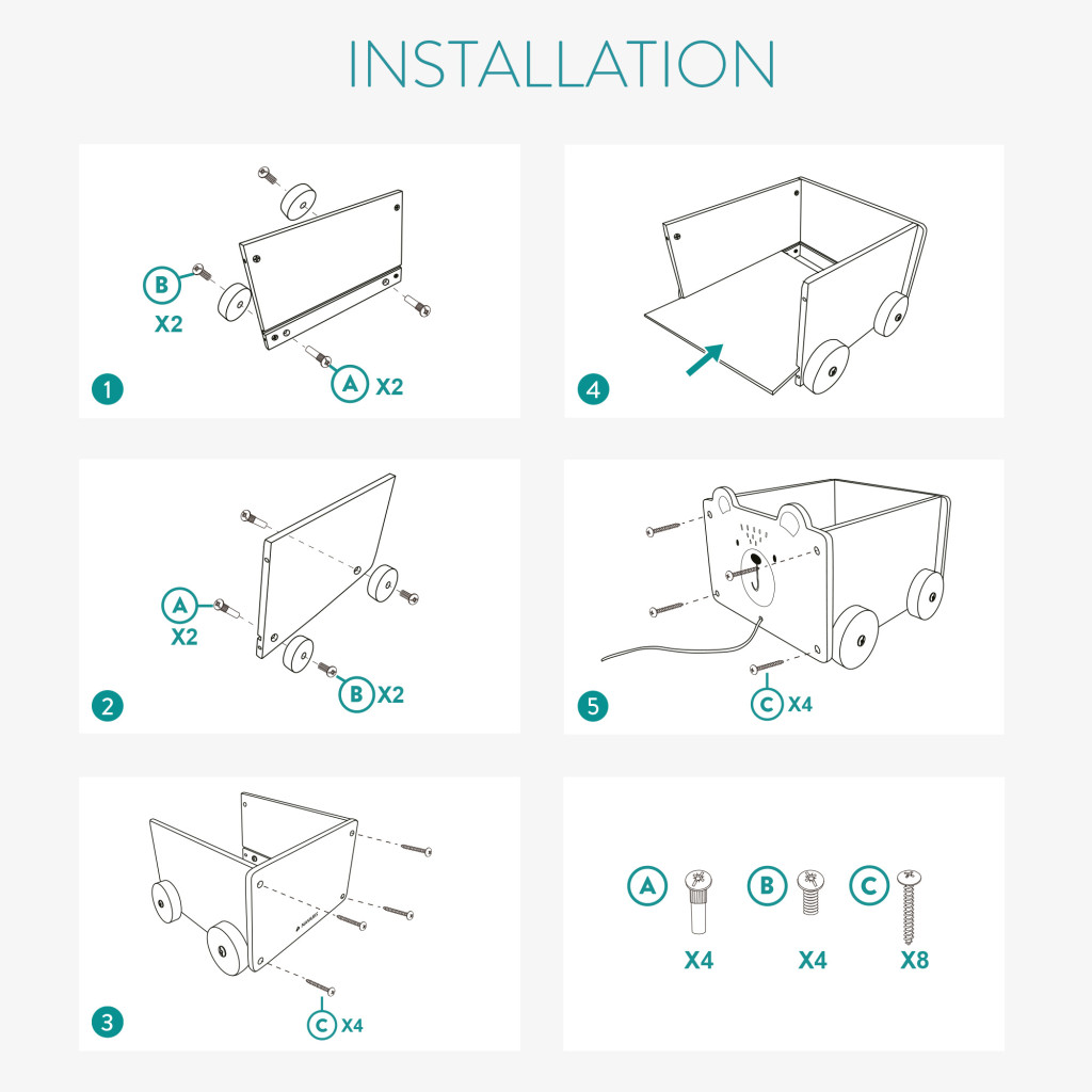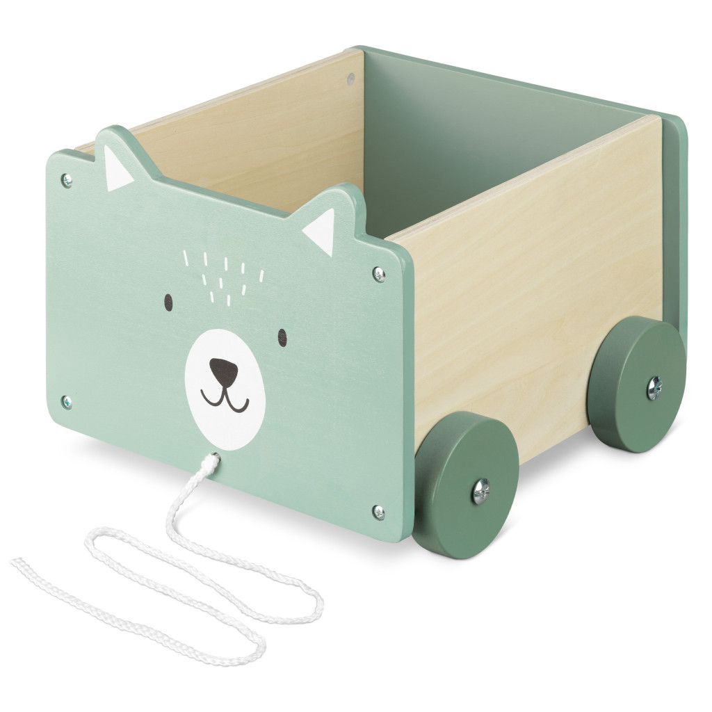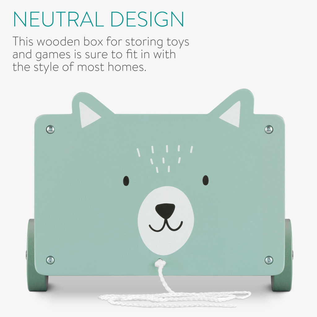 Cutie depozitare jucarii cu roti Navaris, model urs polar, 25.5x24x20 cm, pentru copii, alb, MDF