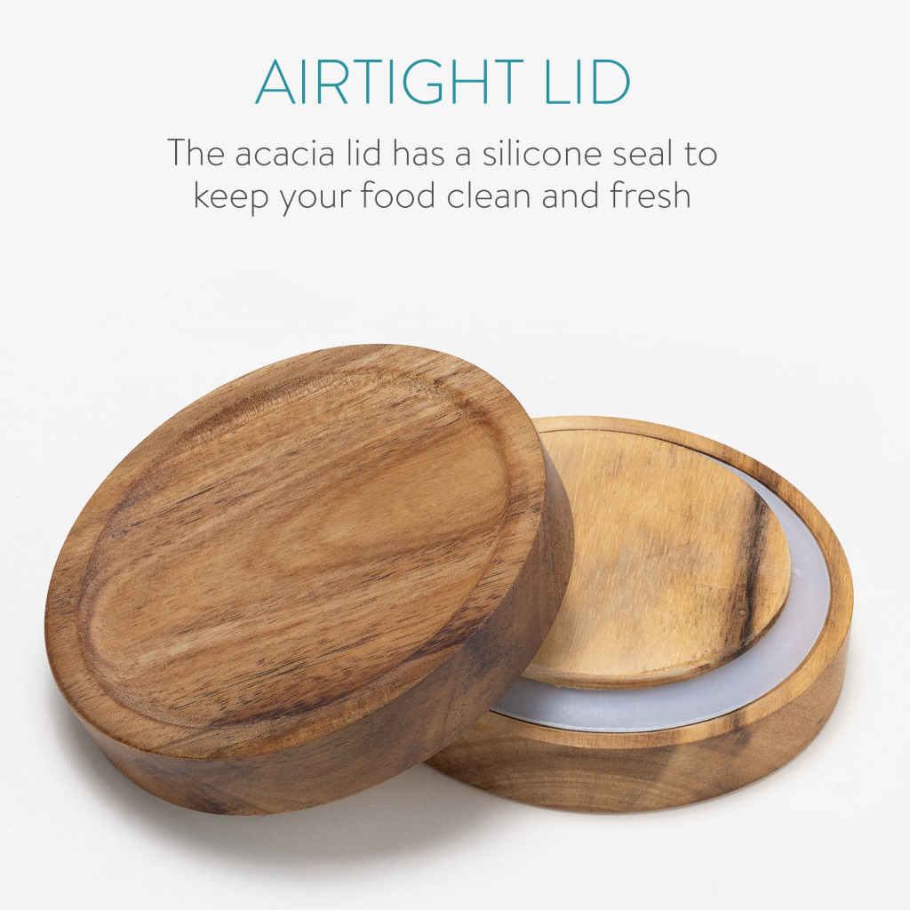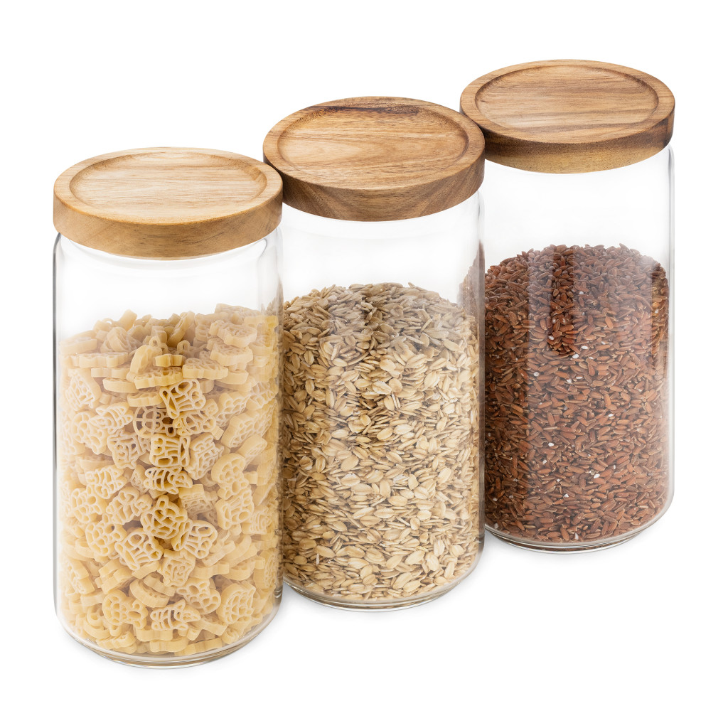 Set 3 borcane Navaris cu capac din lemn de acacia, 950 ml, sticla borosilicata, maro, lemn/sticla