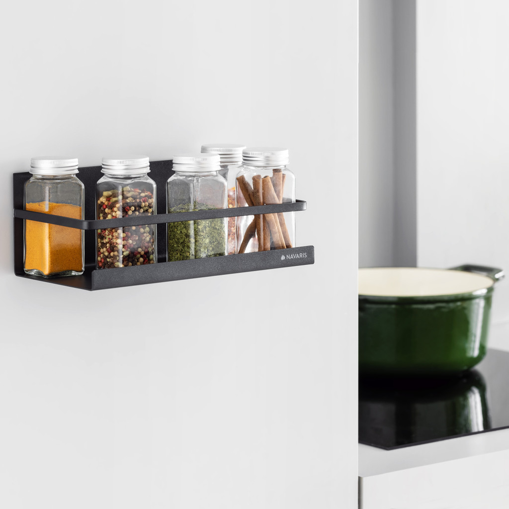 Raft magnetic Navaris, 24.4x12x9.3 cm, 2.5 kg capacitate, condimente, metal/magneti, negru, metal