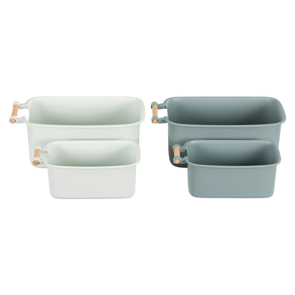 Set 4 cutii depozitare Navaris cu maner din lemn, 37, 8x21, 4x14 cm si 28, 5x16x10, 5 cm, maro, lemn