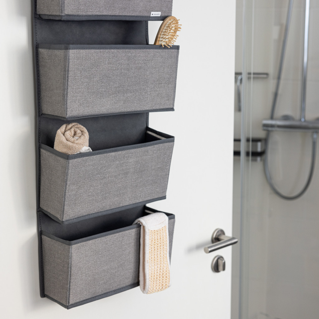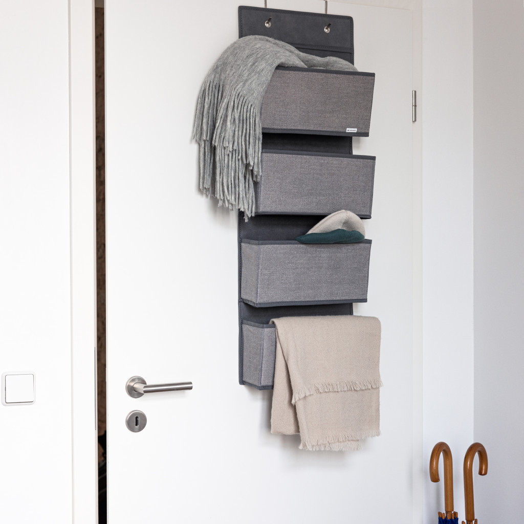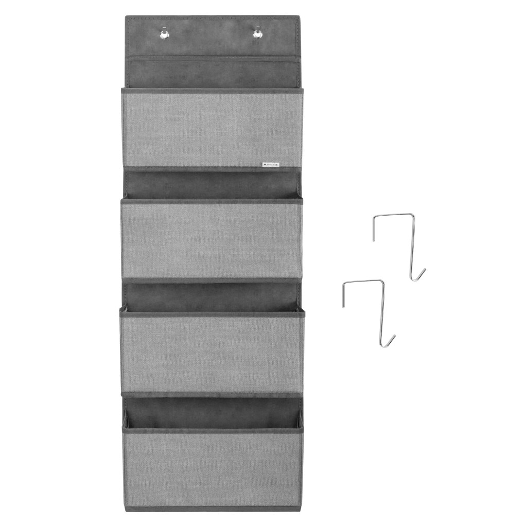 Organizator suspendat usa Navaris, 4 compartimente, 33x9x92 cm, pentru dulap si usa, gri, metal