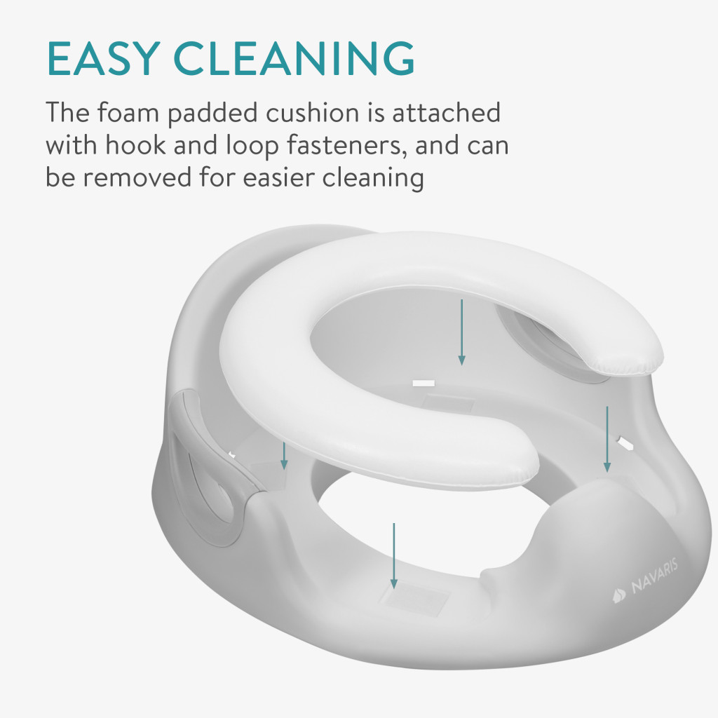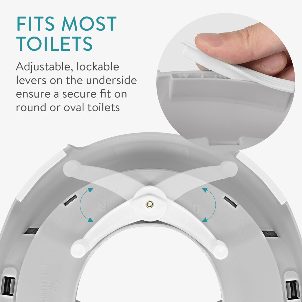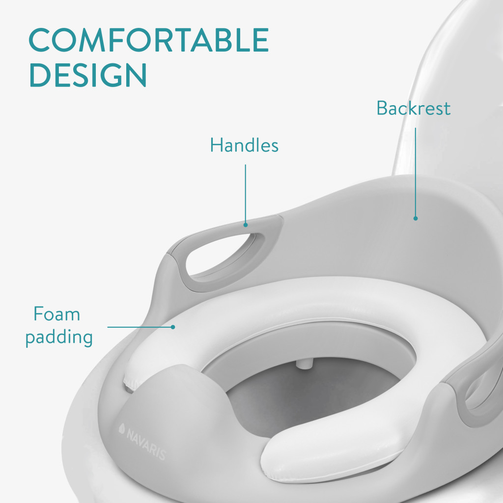 Reductor toaleta copii Navaris, cu capac si manere, 36x32x18 cm, antialunecare, gri, polipropilena/PVC