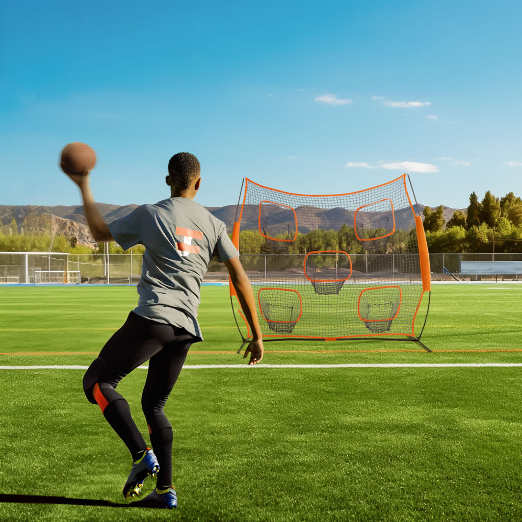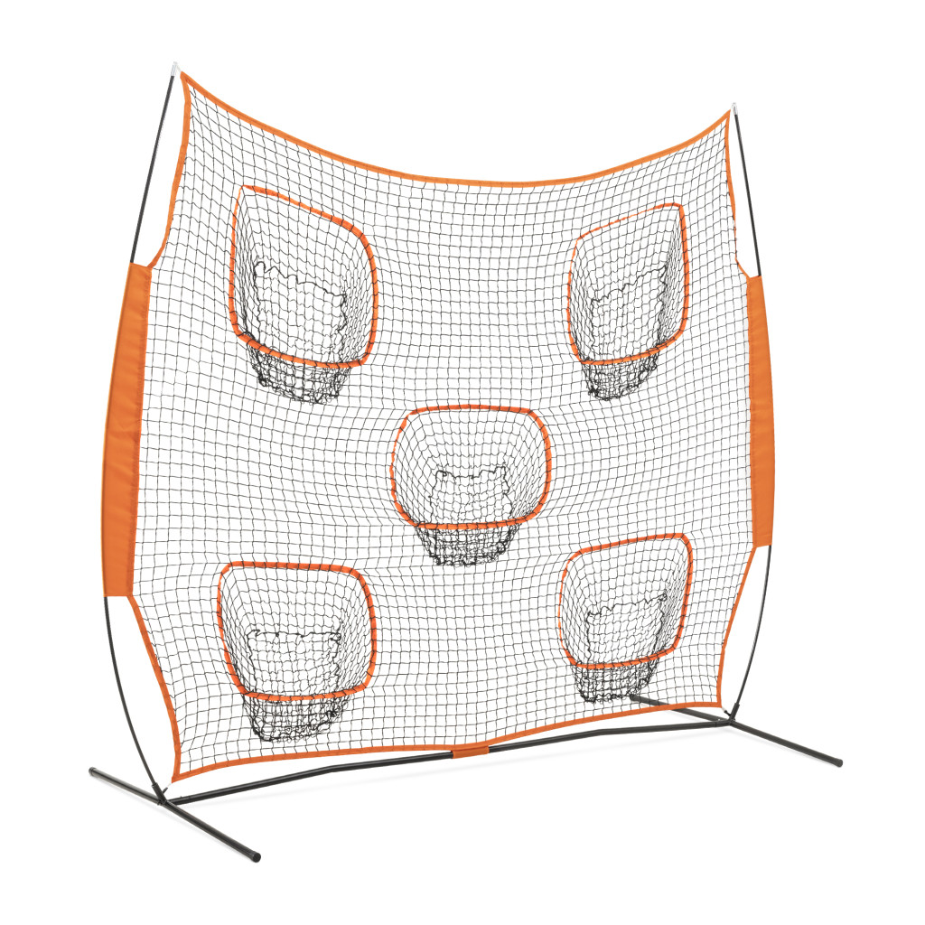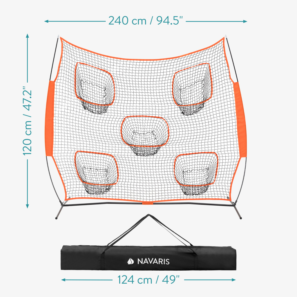 Plasa antrenament aruncare Navaris, 5 buzunare, 240x240x120 cm, pliabila, cu geanta, negru, poliester