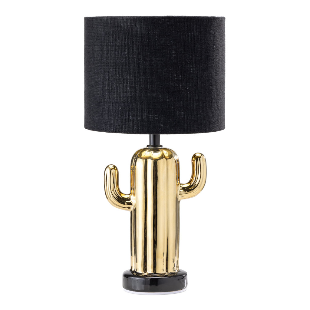 Lampa de masa Navaris, design cactus, 31 cm, dimmer integrat, priza EU, auriu, ceramica/metal