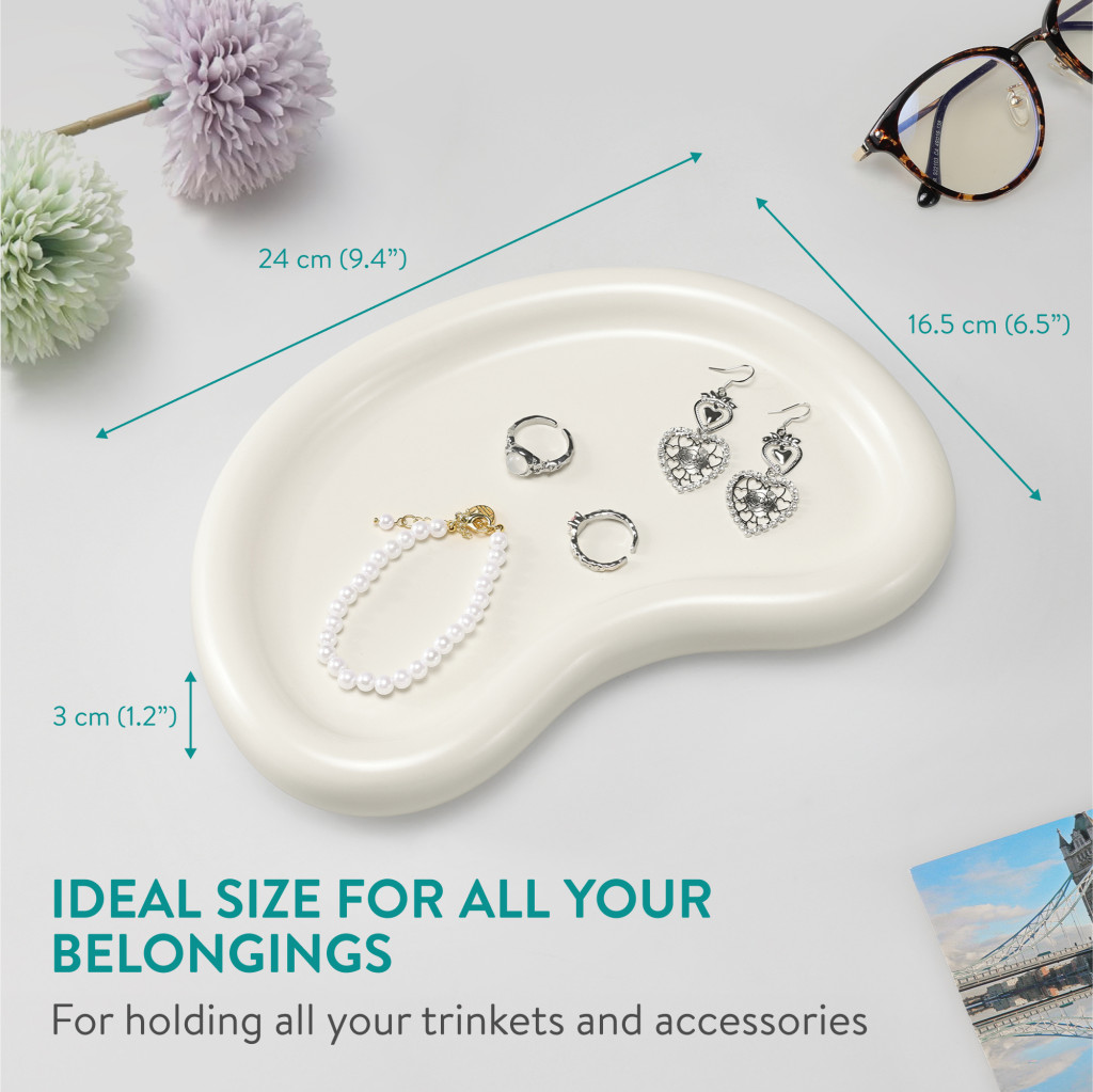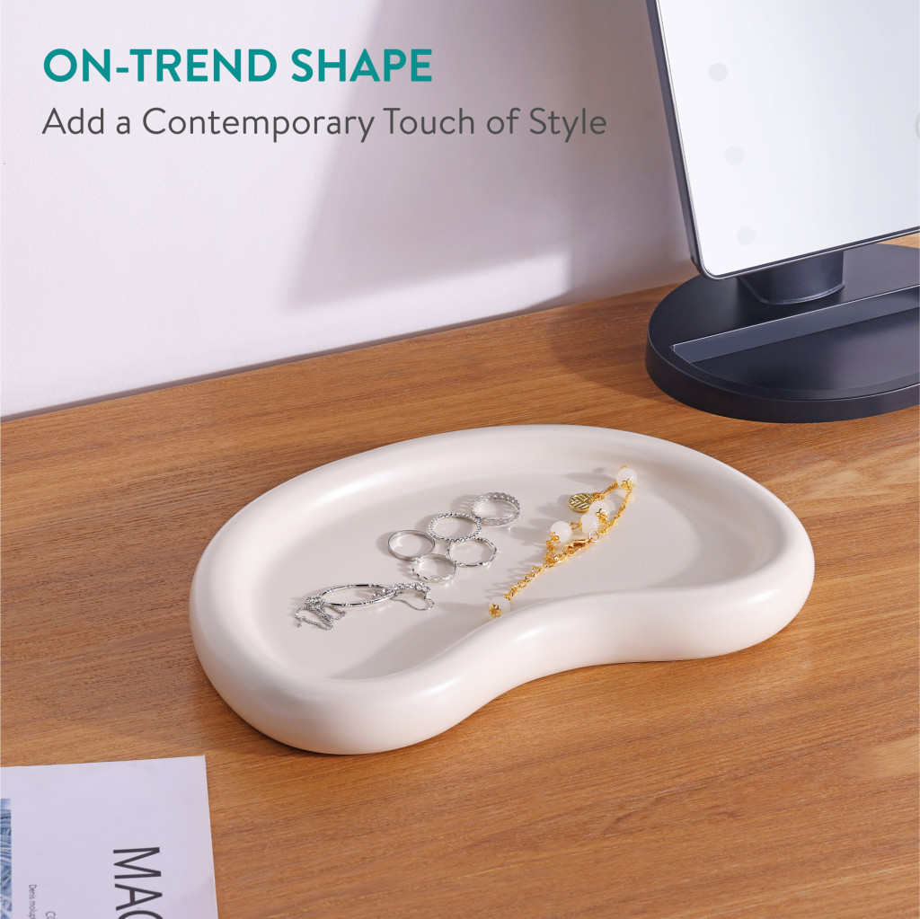 Tava ceramica Navaris, design abstract Moon, 24x16.5x3 cm, pentru bijuterii, bej, ceramica