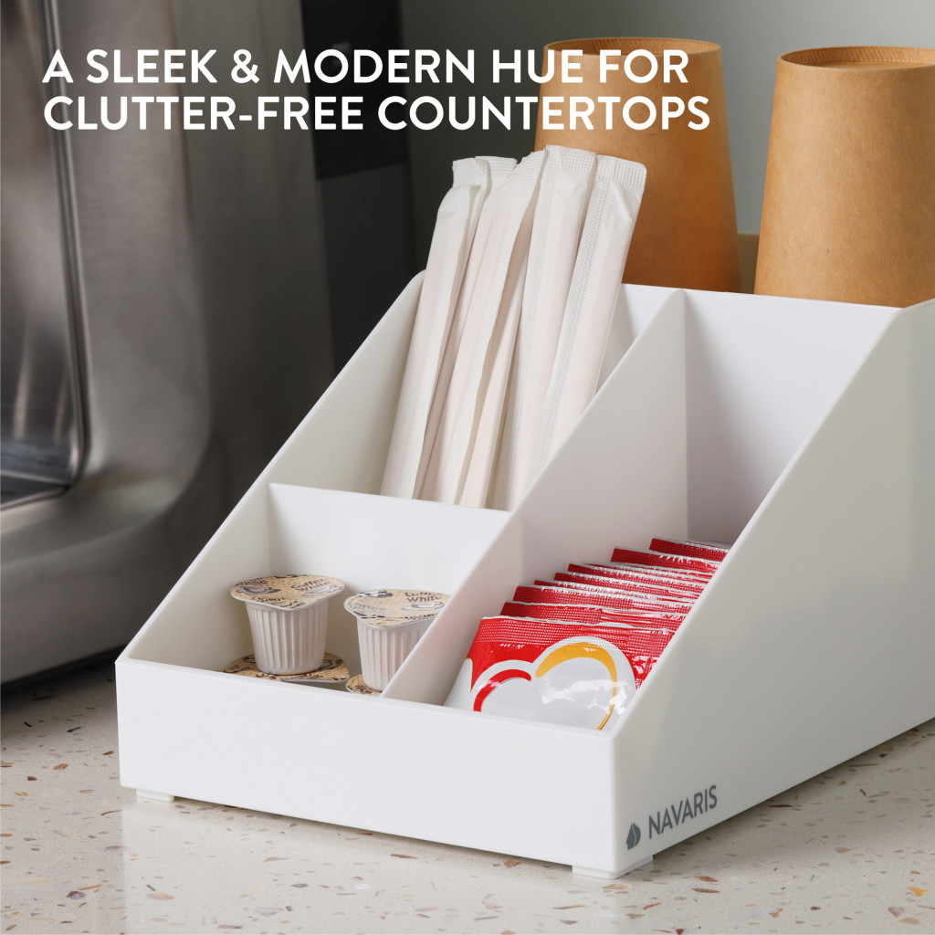 Organizator accesorii cafea Navaris, 4 compartimente, 25.4x16x12.3 cm, HIPS, alb, plastic