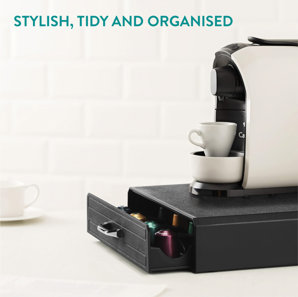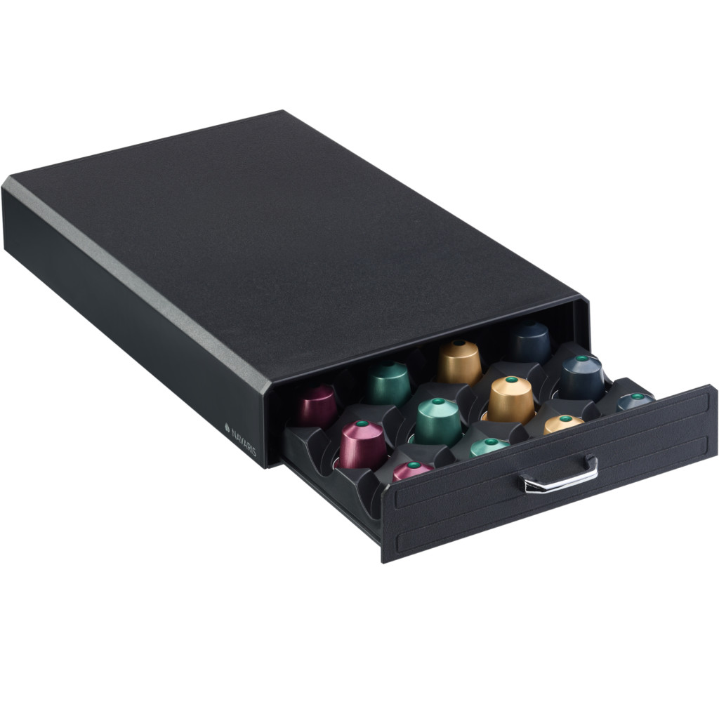 Suport capsule Vertuo Navaris, sertar 43x23.6x5.8 cm, acces rapid, negru, plastic