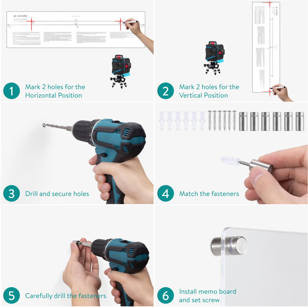 Tabla memo acrilica Navaris, 90x60 cm, organizare perete, acril, transparent, plastic