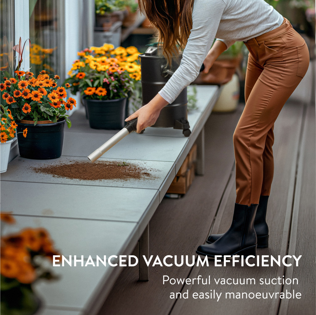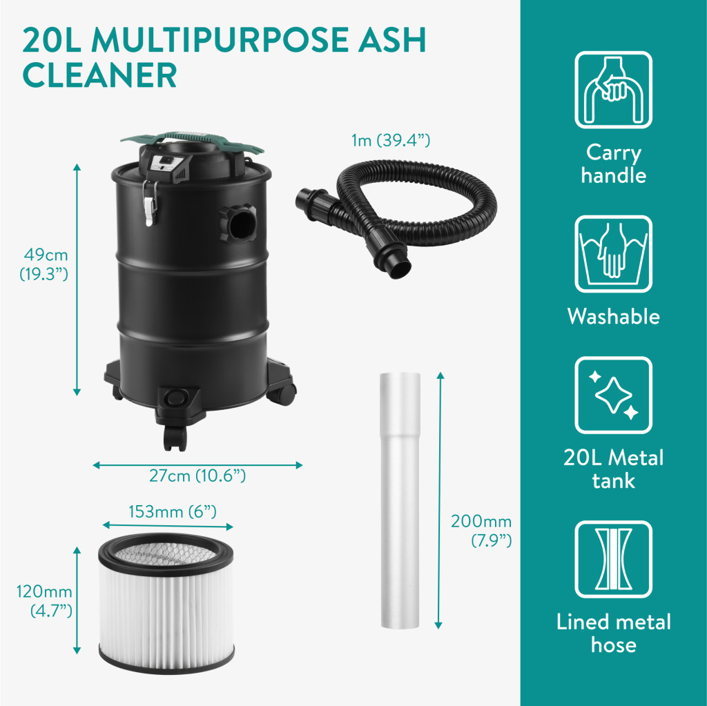 Aspirator pentru cenusa Navaris, cu roti, 20 L, 1000 W, filtru HEPA, 27x27x49 cm, negru, otel