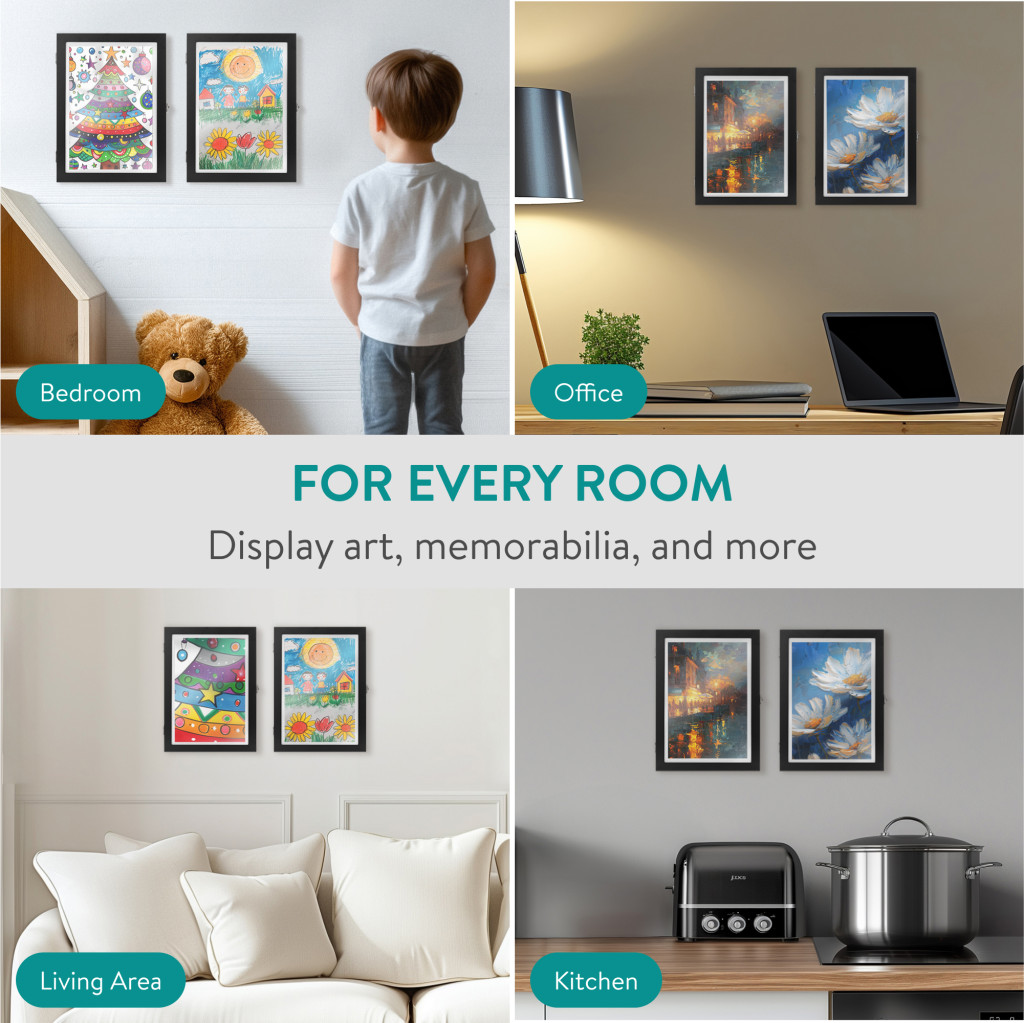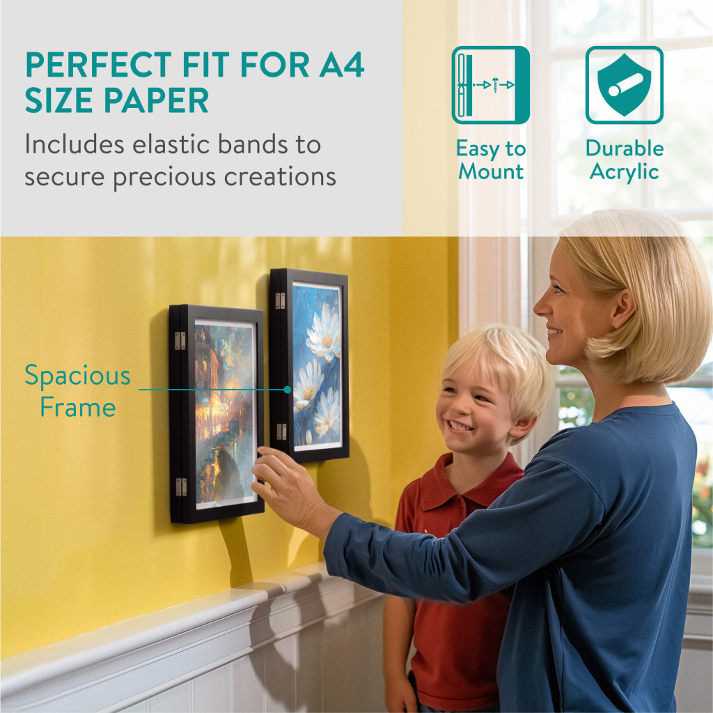 Set 2 rame foto Navaris, deschidere frontala, format A4, schimbare rapida, negru, plastic