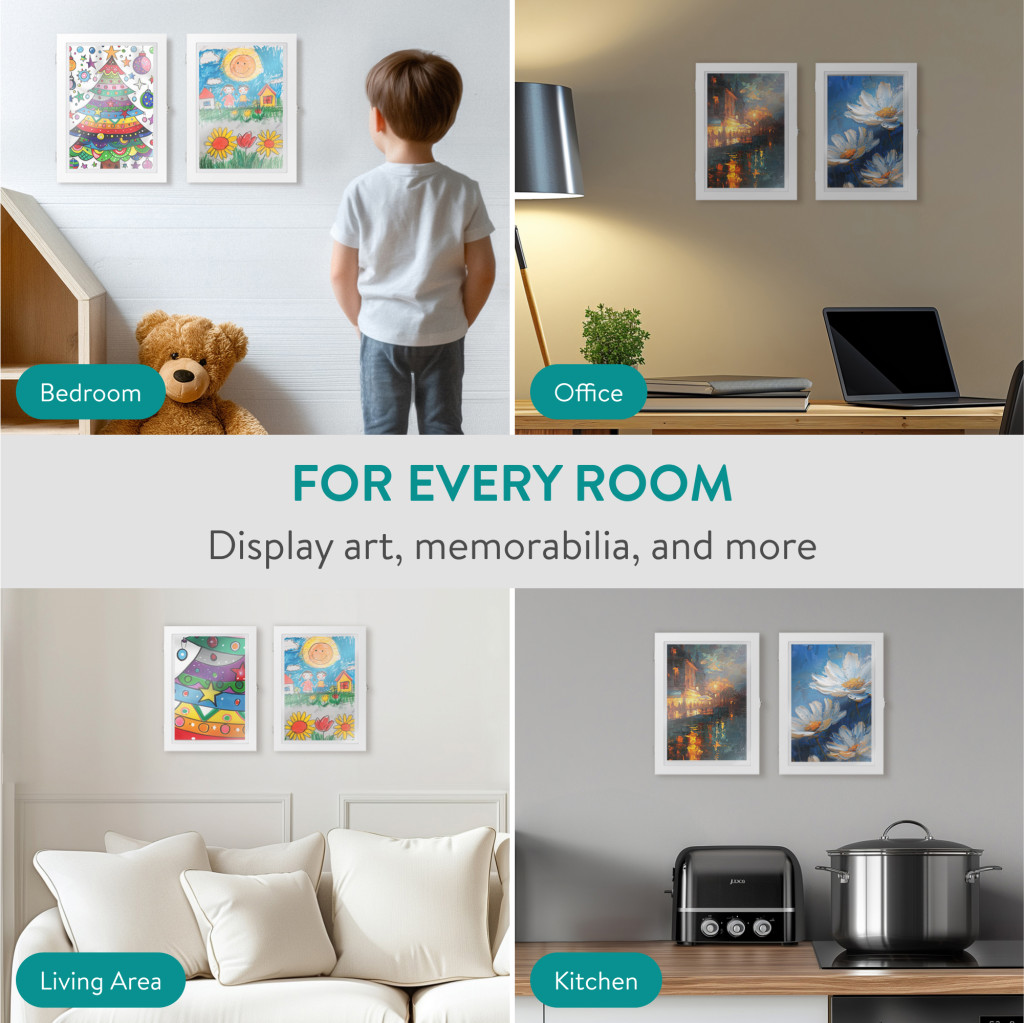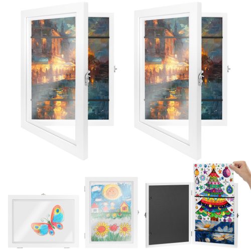 Set 2 rame foto Navaris, deschidere frontala, format A4, schimbare rapida, alb, plastic