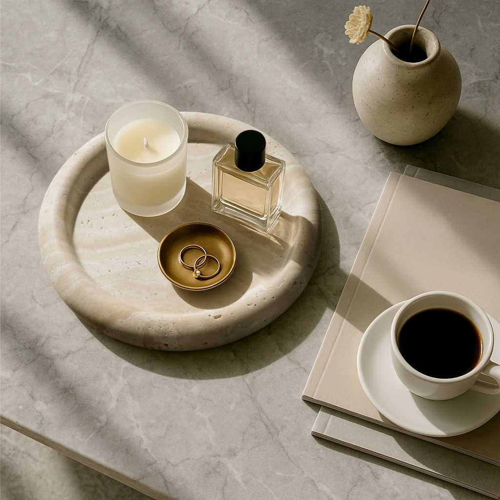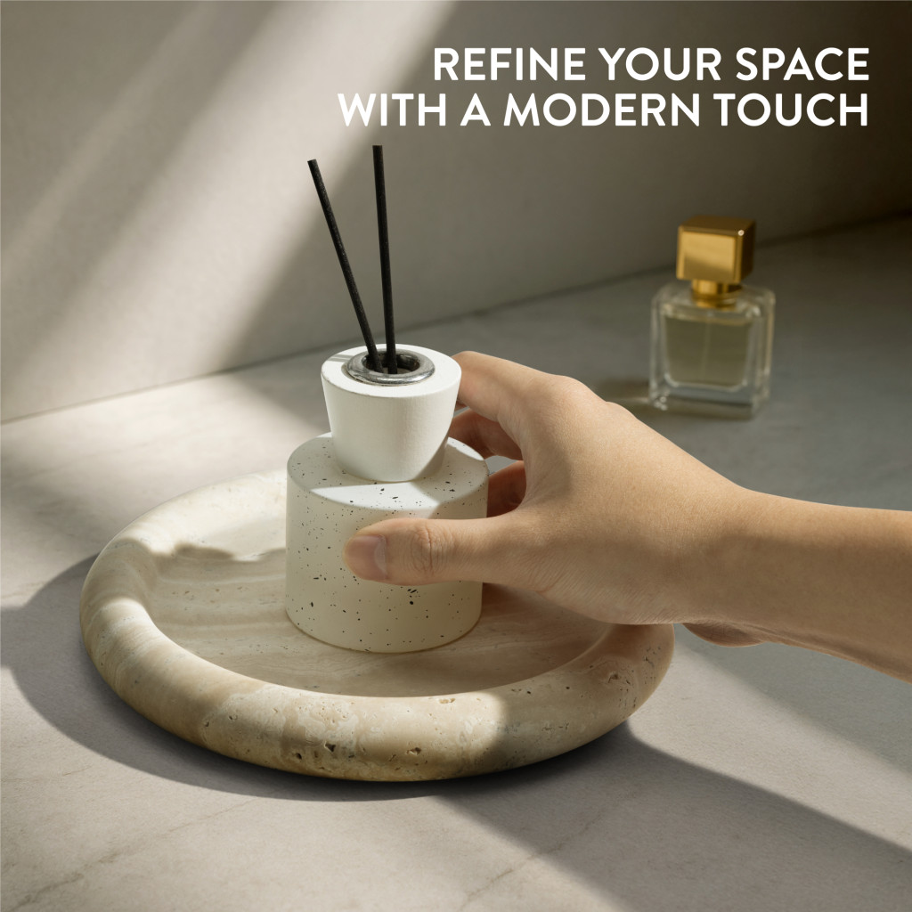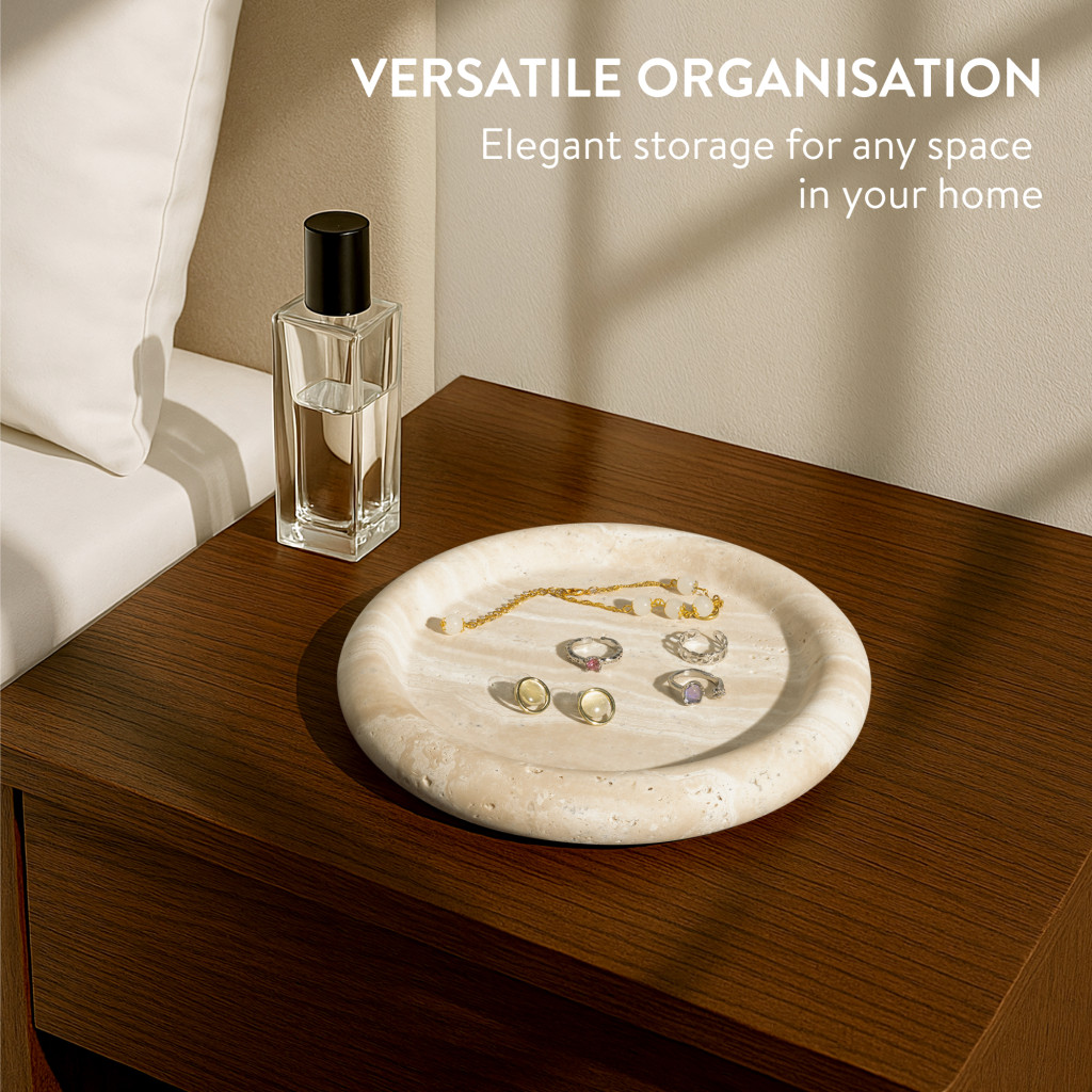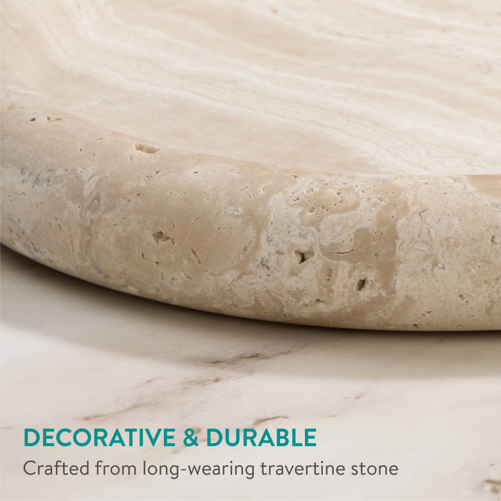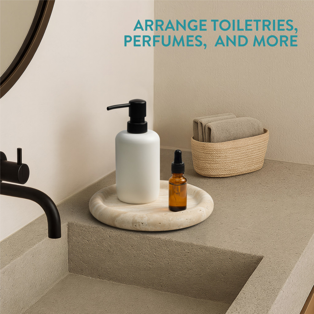 Tava travertin Navaris, rotunda, diametru 20 cm, baie si decor, bej, piatra naturala
