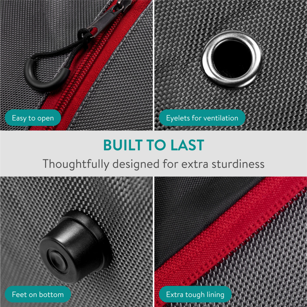 Husa clapari Navaris, 42x38x22 cm, compartiment manusi, poliester 1680D, rosu/gri, poliester