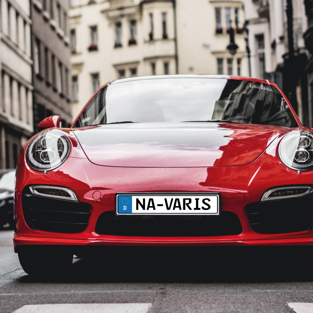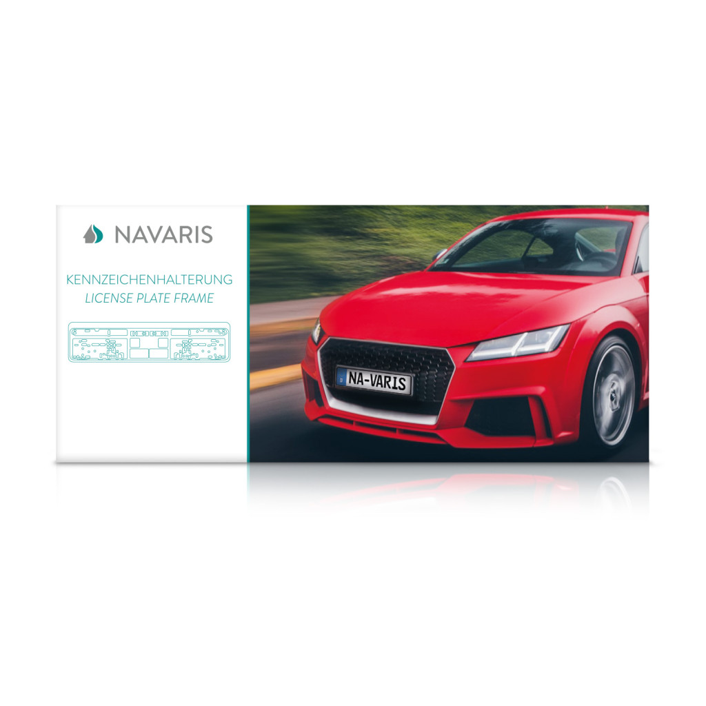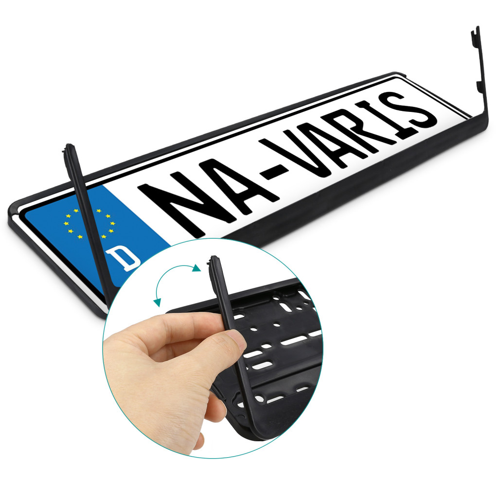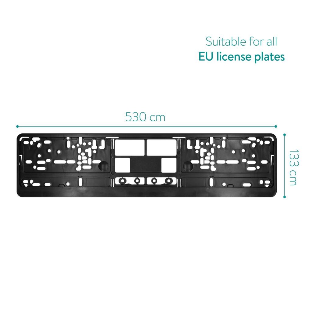 Set 2 suporturi placuta inmatriculare Navaris, 52x11 cm, fara perforare, PP, negru, polipropilena