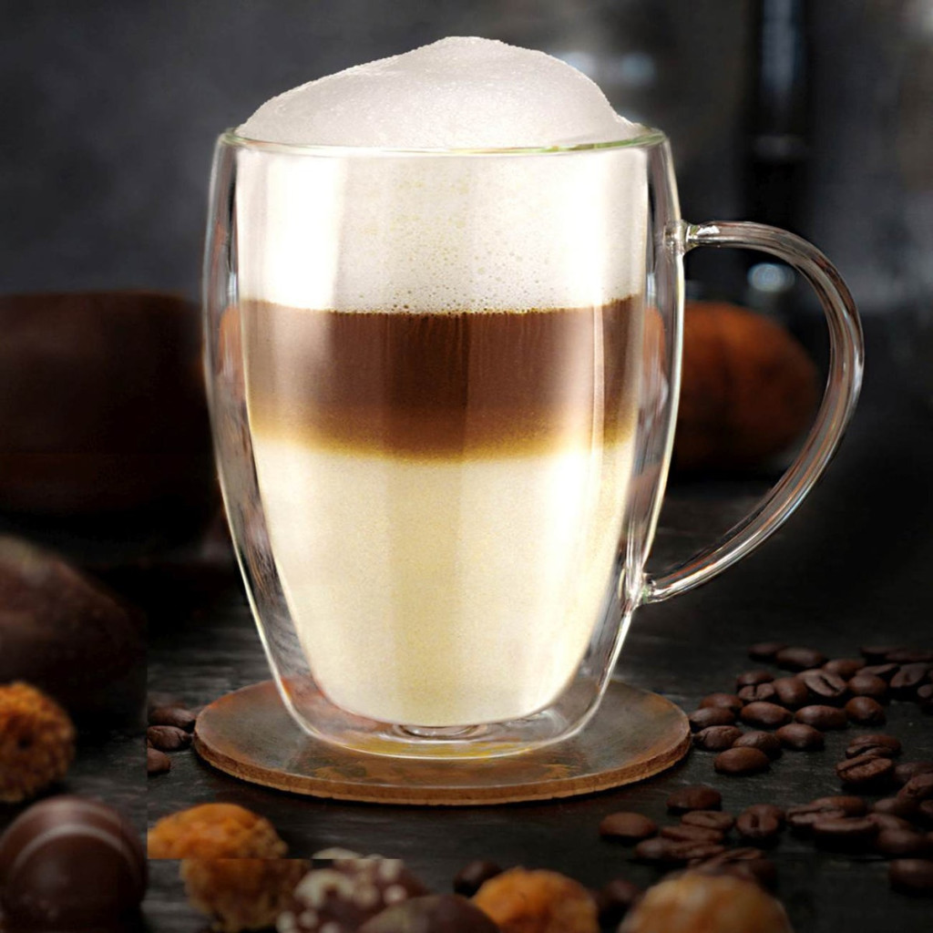 Set 4 cani termice Creano cu maner, 250 ml, sticla borosilicata, perete dublu