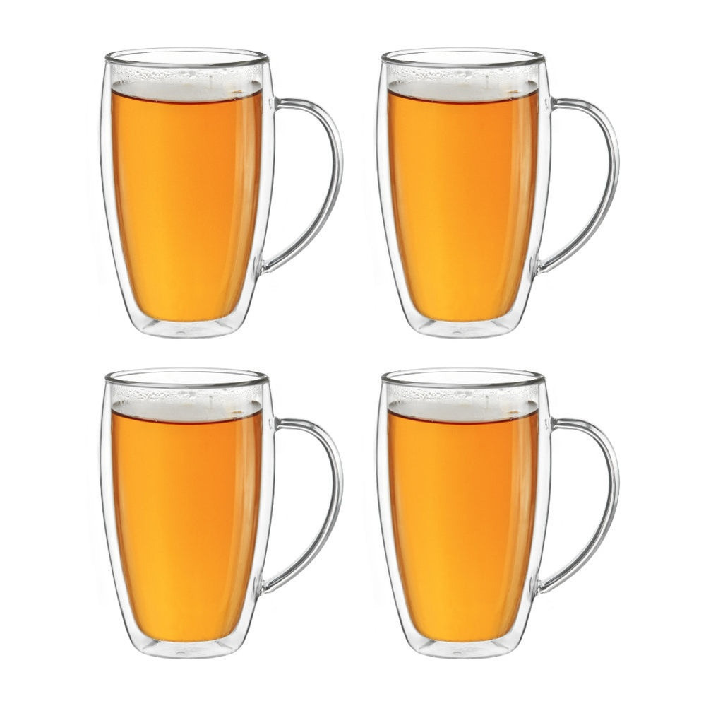 Set 4 cani termice Creano DG-SHH, 250 ml, sticla borosilicata, perete dublu, cu maner