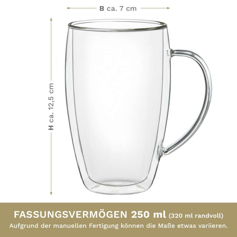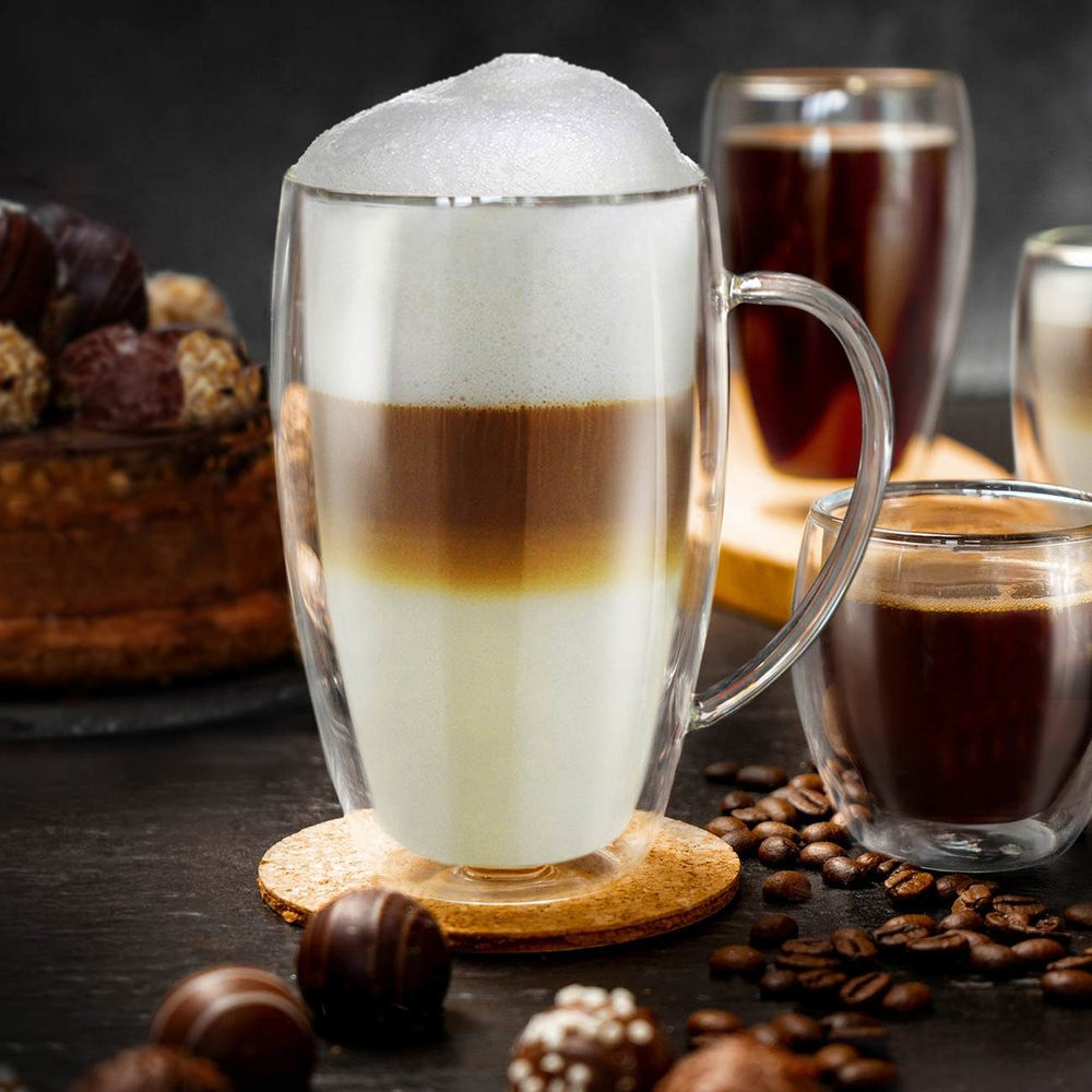 Set 6 cani termice Creano DG-SHH, 400 ml, sticla borosilicata, perete dublu, cu maner