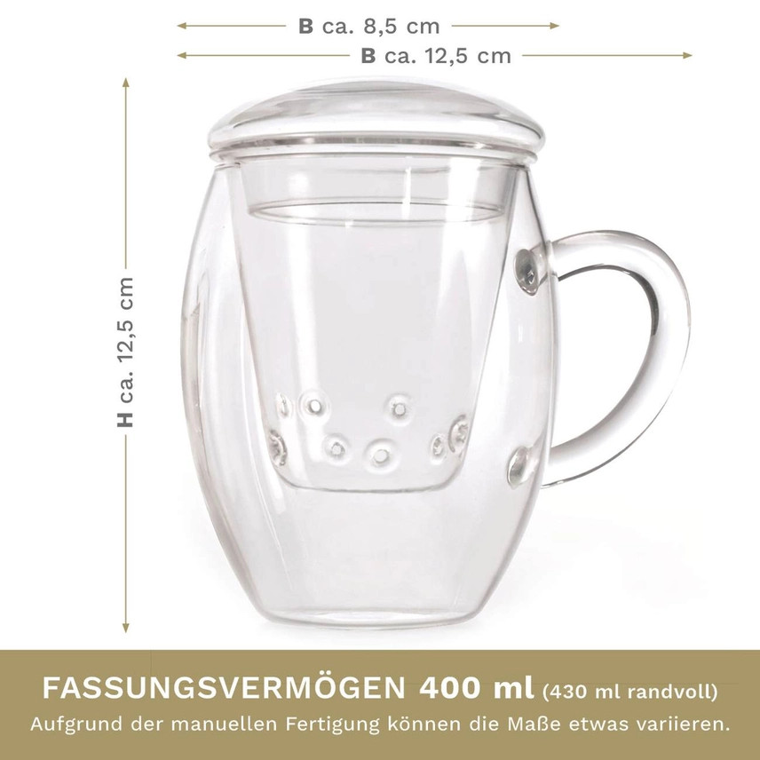 Pahar pentru ceai Creano All-In-One, 400 ml, filtru si capac din sticla, borosilicat